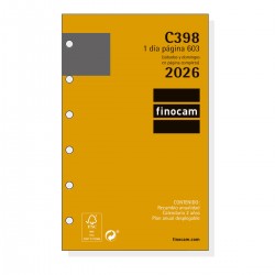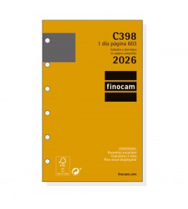 Recambio anual para las agendas de anillas Finocam Classic. Con esquinas microperforadas para localizar rápidamente el día/semana en curso. La anualidad contiene los festivos nacionales y la onomástica.