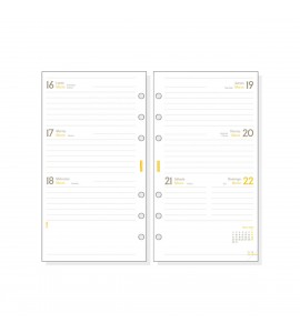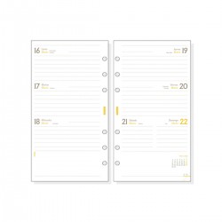 Recambio anual para las agendas de anillas Finocam Classic. Con esquinas microperforadas para localizar rápidamente el día/semana en curso. La anualidad contiene los festivos nacionales y la onomástica.