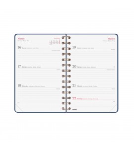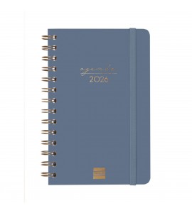 Agenda de espiral de tapa dura de cartón forrado con peliculado mate antirrayaduras . Diseño elegante y sofisticado con detalles estampados metalizados. Ideal para uso personal y/o profesional. Con goma elástica y esquinas microperforadas para localizar rápidamente el día/semana en curso. Incorpora un set de adhesivos temáticos. El diseño interior es limpio y fácil, con espacio suficiente para organizar tus proyectos, tareas y compromisos. Contiene información de interés en la anualidad y otros contenidos extra orientados a la organización personal.