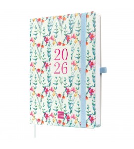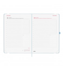 Agenda encuadernada de tapa blanda de tacto suave y agradable. Diseños en tendencia y a la moda con detalles estampados metalizados. Ideal para uso personal y/o profesional. Con cinta punto y bolsillo interior con fuelle de papel tejido muy resistente al uso. También goma elástica y anilla portabolígrafo para llevar siempre contigo un elemento de escritura. Apertura perfecta para poder escribir cómodamente y esquinas microperforadas para localizar rápidamente el día/semana en curso. El diseño interior es limpio y fácil, con espacio suficiente para organizar tus proyectos, tareas y compromisos. La agenda incluye información de interés en la anualidad y otros contenidos extra orientados a la organización personal.