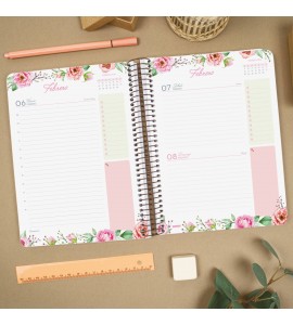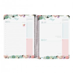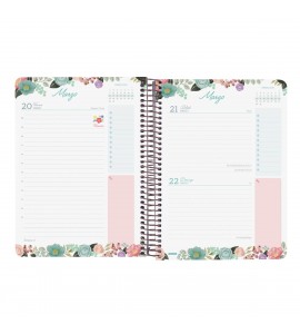 Agenda de espiral a todo color diseñada para acompañarte en todos los proyectos que quieras hacer florecer. De tapa dura de cartón forrado con peliculado mate antirrayaduras y goma elástica. Ideal tanto para estudiantes como para adultos. Al inicio de cada mes, la agenda ofrece el calendario cuadriculado acompañado de un mensaje motivador. Esquinas microperforadas para localizar rápidamente el día/semana en curso. La agenda dispone de adhesivos temáticos orientados a la organización personal, información de interés en la anualidad y otros contenidos extra. Disfruta de la planificación y la organización personal con esta agenda: cada día es una nueva oportunidad para hacer nacer y crecer tus objetivos.