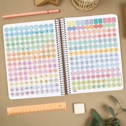 · Contenido: La anualidad de la agenda incluye la información relativa a: onomástica, festivos nacionales, cambios de estación, días mundiales e internacionales de interés, días señalados e inicios de los años nuevos chino, musulmán, ortodoxo y hebreo. La agenda dispone también de otros contenidos extra: datos personales, calendarios, planificación mensual en columnas de 2 años, fechas para recordar, horarios, objetivos personales, planificación mensual cuadriculada de 12 meses intercalada en la anualidad, proyectos, planes y escapadas, maleta, películas y series, libros, control de gastos, hojas de checklist, hojas de punteado tipo dotted, contactos y set de adhesivos temáticos.