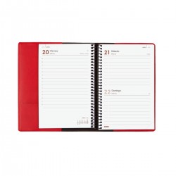Agenda de espiral con cubierta. Diseño elegante y juvenil. Ideal para la oficina o para un uso personal. Con bolsillo interior. Equipada con un bloc de notas independiente para disponer siempre de hojas en blanco (también disponible como recambio). Cierre con goma elástica. Con esquinas microperforadas para localizar rápidamente el día/semana en curso. La anualidad contiene la información útil relativa a: onomástica, festivos nacionales, cambios de estación, cambios de hora e inicios del nuevo año chino, musulmán, ortodoxo y hebreo. La agenda incluye otros contenidos extra. Además, esta agenda te permite conservar la cubierta sustituyendo anualmente solo la agenda de espiral. Si lo deseas, también podrás reutilizar la cubierta como funda de libro o funda de libreta.