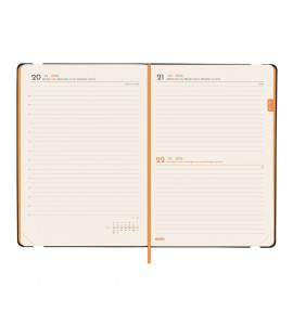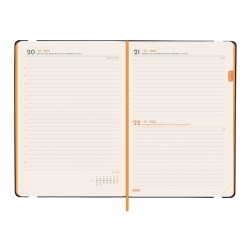 Agenda encuadernada de tapa blanda y flexible. Material de tacto suave y agradable. Apertura perfecta para poder escribir cómodamente. Con goma elástica y cinta punto. Esquinas microperforadas para localizar rápidamente el día/semana en curso. Para facilitar la localización de cada mes, la anualidad incorpora un indicador en la parte superior de las páginas. La anualidad incluye información de interés y otros contenidos extra.