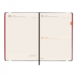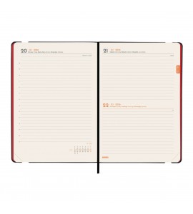 Agenda encuadernada de tapa blanda y flexible. Material de tacto suave y agradable. Apertura perfecta para poder escribir cómodamente. Con goma elástica y cinta punto. Esquinas microperforadas para localizar rápidamente el día/semana en curso. Para facilitar la localización de cada mes, la anualidad incorpora un indicador en la parte superior de las páginas. La anualidad incluye información de interés y otros contenidos extra.