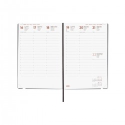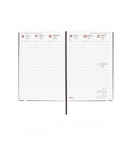 Agenda profesional encuadernada de tapa blanda y flexible. De tacto suave muy agradable. Estilo moderno y universal. Apertura perfecta para poder escribir cómodamente. Con goma elástica y cinta punto. Esquinas microperforadas para localizar rápidamente el día/semana en curso. Agenda con información de interés en la anualidad y otros contenidos extra.