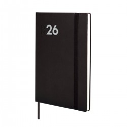 Agenda profesional encuadernada de tapa blanda y flexible. De tacto muy suave y gomoso. De estilo moderno y universal. Apertura perfecta. Con goma elástica y cinta-punto. Con esquinas microperforadas para localizar rápidamente el día/semana en curso. La anualidad contiene la información útil relativa a: onomástica, festivos nacionales, fases lunares, cambios de estación, cambios de hora e inicios del nuevo año chino, musulmán, ortodoxo y hebreo. La agenda incluye otros contenidos extra.