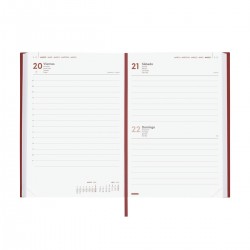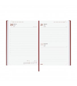 Con cinta punto y esquinas microperforadas para localizar rápidamente el día/semana en curso. Contiene información de interés en la anualidad y otros contenidos extra.