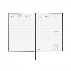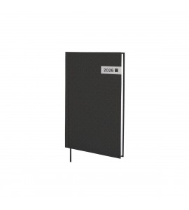 Agenda profesional encuadernada de estilo moderno. Tapa dura de cartón forrado con peliculado mate antirayaduras.