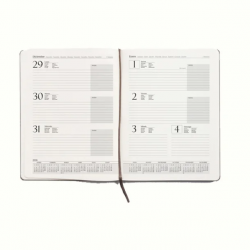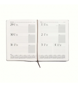 Agenda anual 2026, Tapas encuadernadas PU con cierre de goma. Estampación año en oro y guía de tela. 160 Páginas en papel marfil de 80 g. Interior a dos tintas.