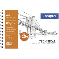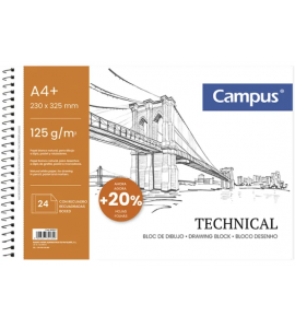 Bloc de Dibujo Campus Drawing A4+ Espiral Microperforado 24 Hojas 125g. Con Recuadro