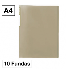 Tapas de polipropileno flexibles. Fundas transparentes de polipropileno antireflejo de 45 micras y resistentes a las fotocopias. Soldadas al lomo. 10 fundas. Color OCRE.