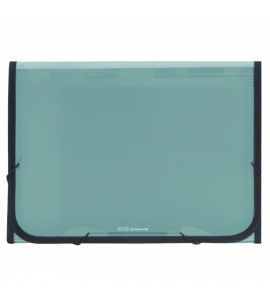 Carpeta clasificadora fabricada en polipropileno. Con doce separadores. Con goma. Color: Verde Claro. Traslúcida.