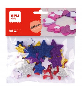 Goma eva adhesiva en forma de estrellas con purpurina. Bolsa de 50 unidades.