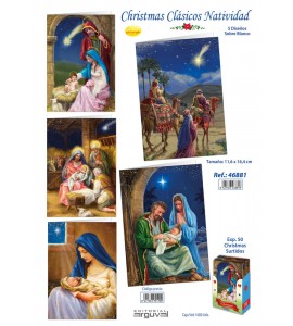Tamaño 116x 164 mm. Sobre color Blanco. 5 Diseños. Venta en caja de 50 unidades.