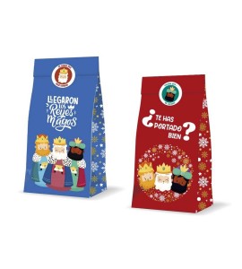 - Diseño temático: Las bolsas incluyen ilustraciones coloridas de los Reyes Magos con mensajes como "¿Te has portado bien?" y "Llegaron los Reyes Magos".