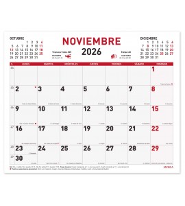 Calendario mensual 30X24,7CM.  32 páginas. Con espacio para escribir