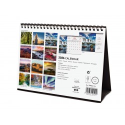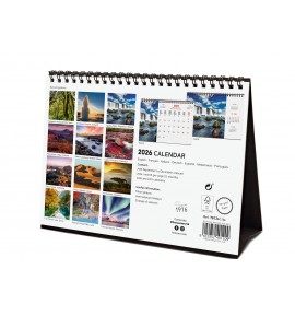 Calendario anual de sobremesa con espacio diario para anotaciones. Encuadernado con doble espiral. Perfecto para planificar. Temáticas variadas, ideales para decorar la oficina o el hogar. Una imagen diferente en cada mes. Con mes anterior y posterior en cada página. Calendario con información útil y de interés.